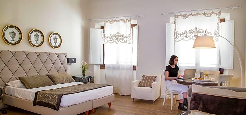 У Boutique Hotel del Corso є номер, що підходить кожному — чи ви на романтичному вікенді, сімейній пригоді або веселі з друзями! Уявіть собі відпочинок у Deluxe Junior Suite, де вас чекатиме затишний оазис з просторими кімнатами та неймовірними краєвидами. Уявіть, як ви прокидаєтеся під сонячне світло, що просочується крізь вікно, з бажанням дослідити вулиці Флоренції, які чекають на вас. Для сімей, яким потрібне більше місця, чарівний Family Suite пропонує всі домашні зручності, щоб ви могли створювати тривалі спогади разом перед тим, як вирушити за смачним джелато та оглядати визначні пам'ятки.